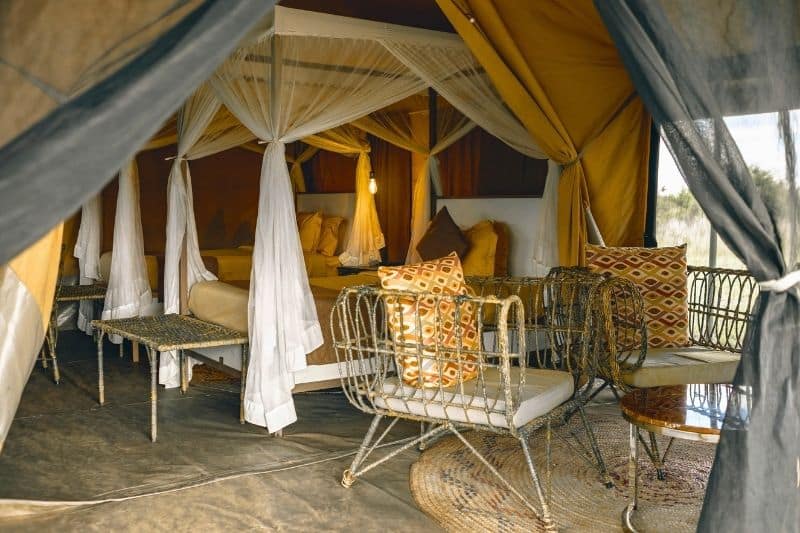 It features 20 well-appointed luxury tents, all en-suite with modern amenities, providing guests with panoramic views of nature and wildlife from the comfort of their beds or verandas.
